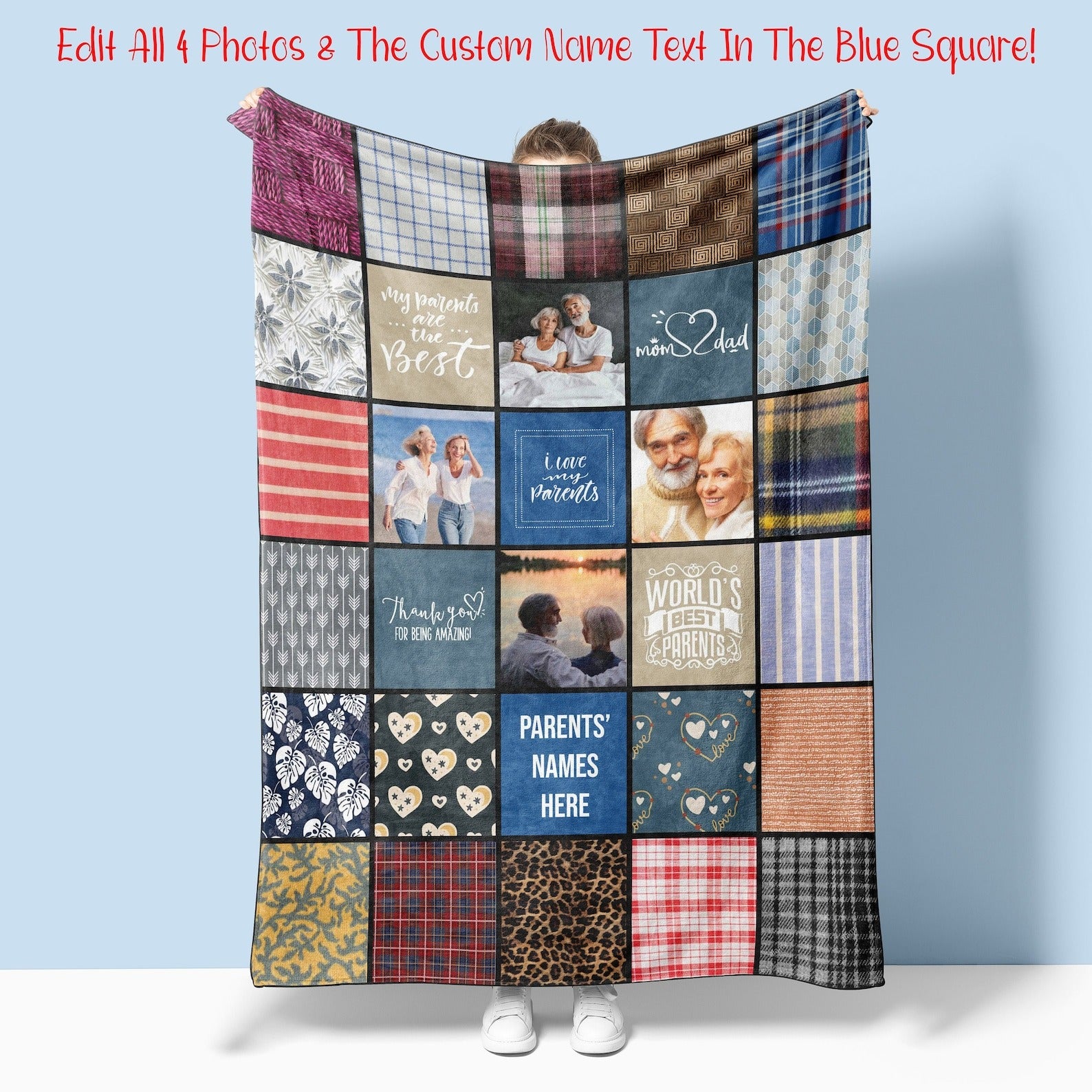 Gift for Parents Personalized Photo Blanket, Custom Fleece or Sherpa Throw from Kids, Home Décor Presents from Children
