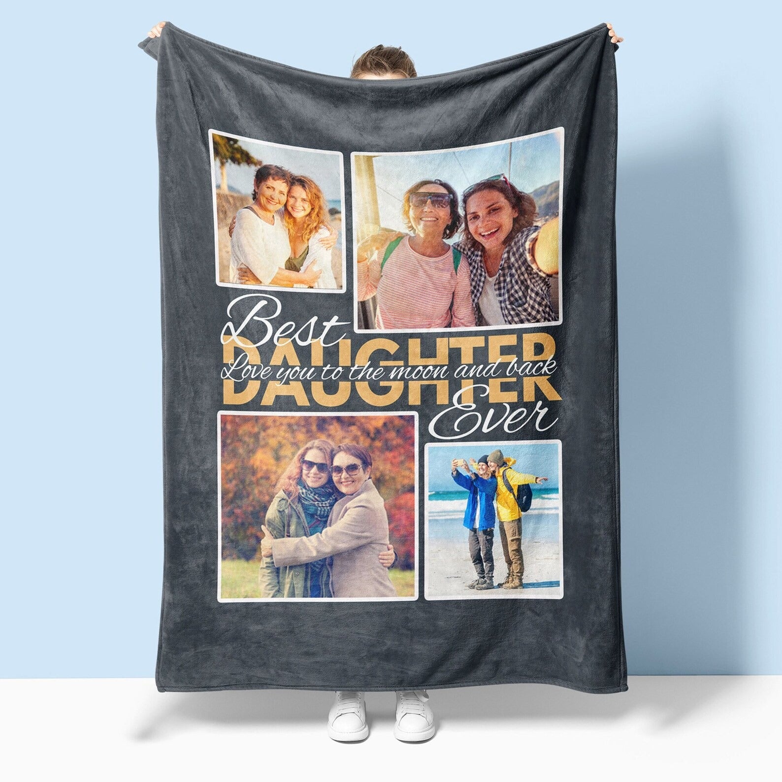 Gifts For Daughter Personalized Photo Collage Blanket, Best Daughter Ever, Custom Christmas Gift For Daughter From Mom and Dad