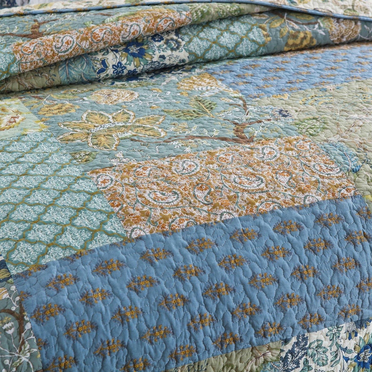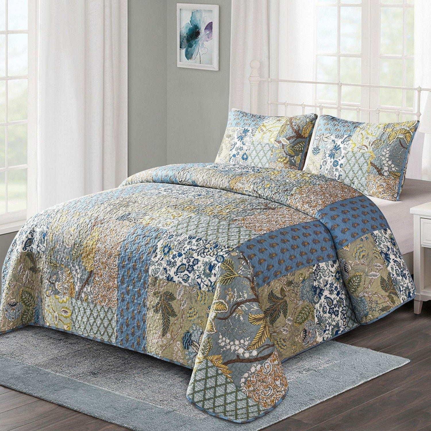 Patchwork Cotton Quilt Bedding Set 3 Pieces, Boho Quilted Bedspread With 2 Pillow Shams, Floral Pattern Quilted Coverlet Comforter