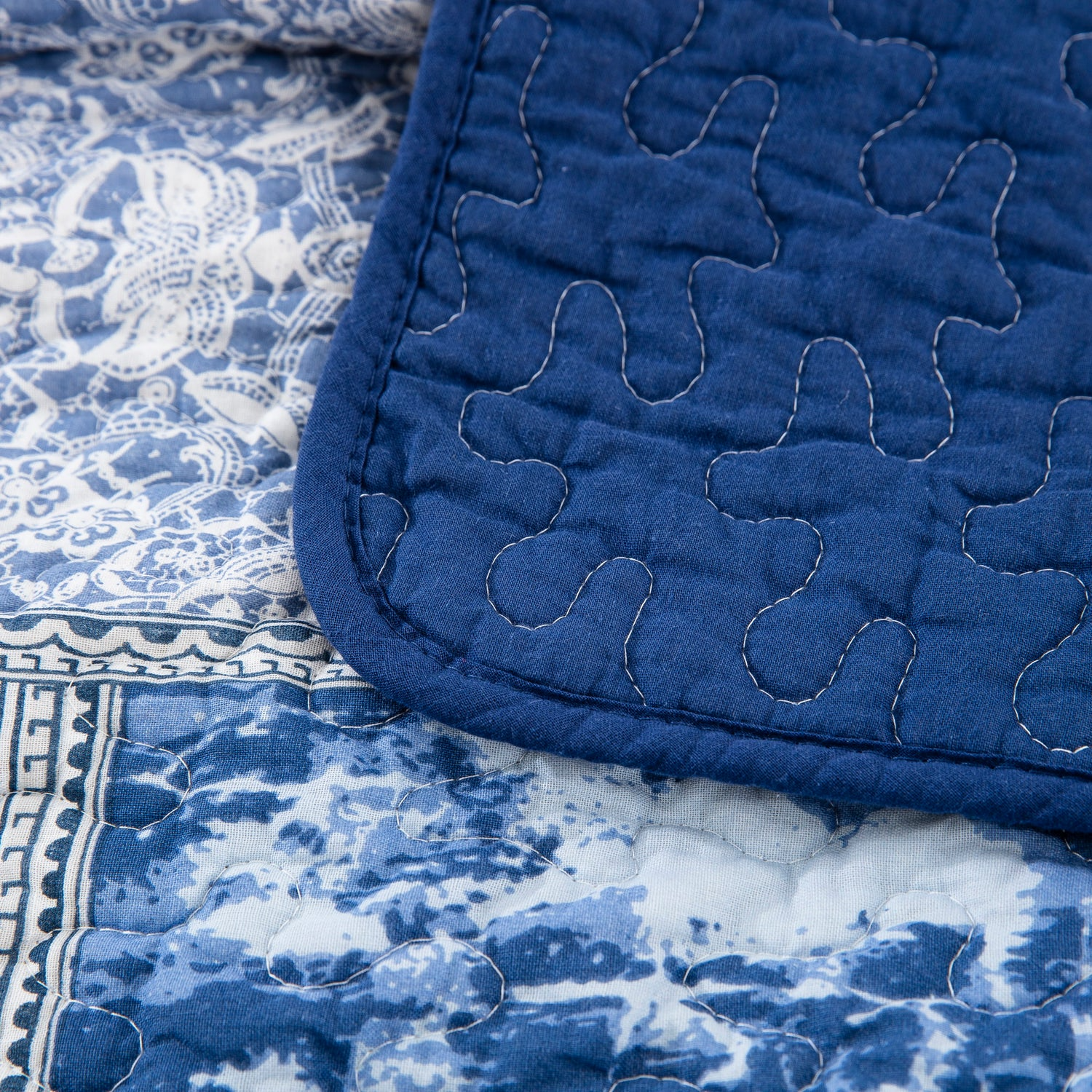 Pure Cotton Navy Blue Classic Bohemian Reversible Patchwork Quilt Sets 3 Pieces Coverlet Bedding Set with 2 Pillowcases