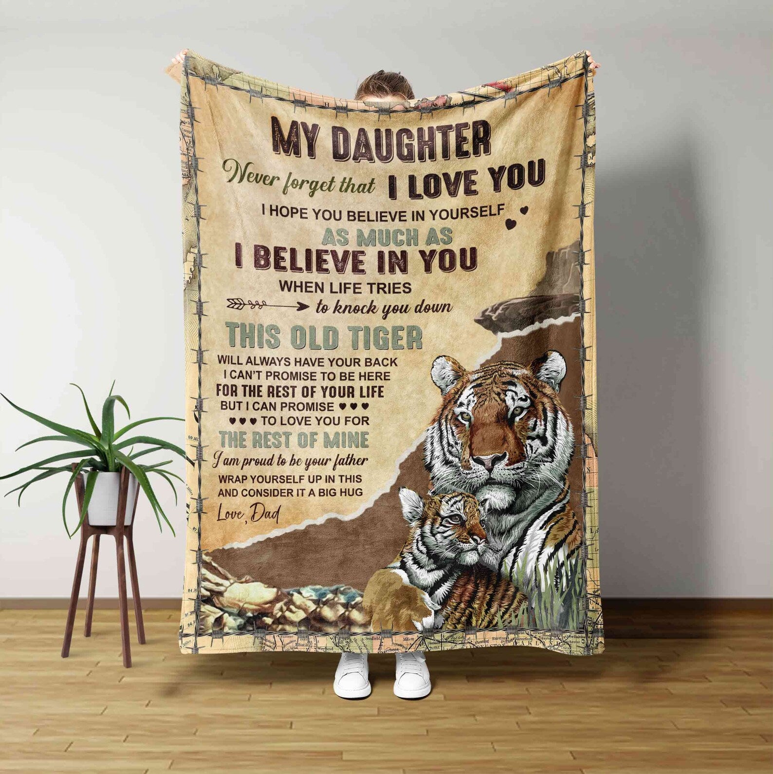 To My Daughter Blanket, Custom Tiger Blanket With Name, Tiger Blanket For Strong Girl, Family Blanket, Blanket For Girls, Christmas Blanket
